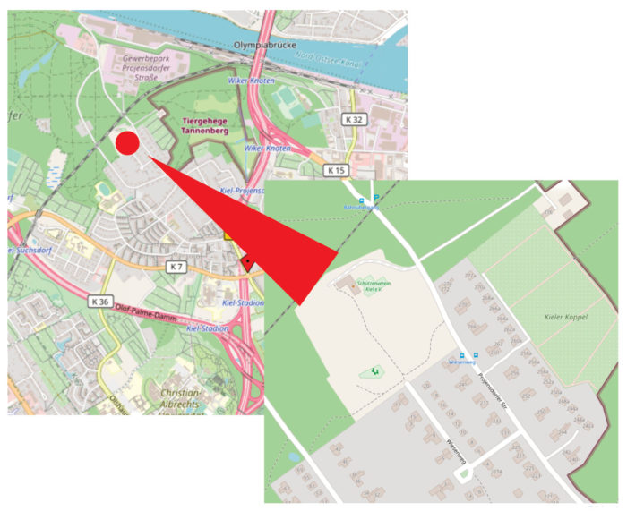 Der Schützenverein Kiel e.V. befindet sich in 24106 Kiel, in der Projensdorfer Str. 251. Am besten zu erreichen über die B76 Olof-Palme-Damm bis zur Abfahrt Holstein Stadion. Dort links auf den Westring biegen und wieder links der Projensdorfer Str. Richtung Norden folgen, bis zur Einfahrt der Hausnummer 251 auf der linken Seite.